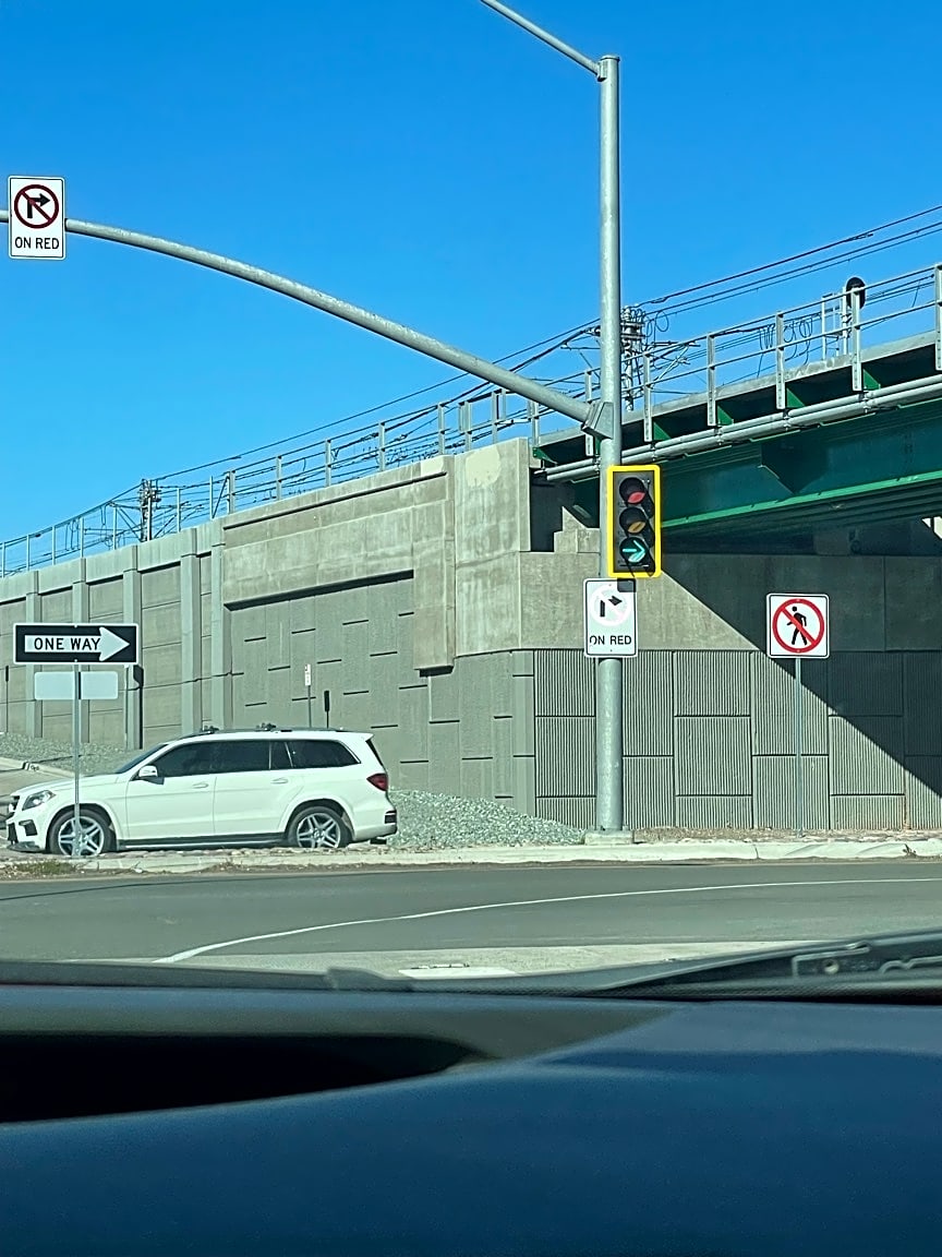 No turn on red sign is super faded and people can’t see it very well it needs to be bigger and blinking at nights it’s impossible to see