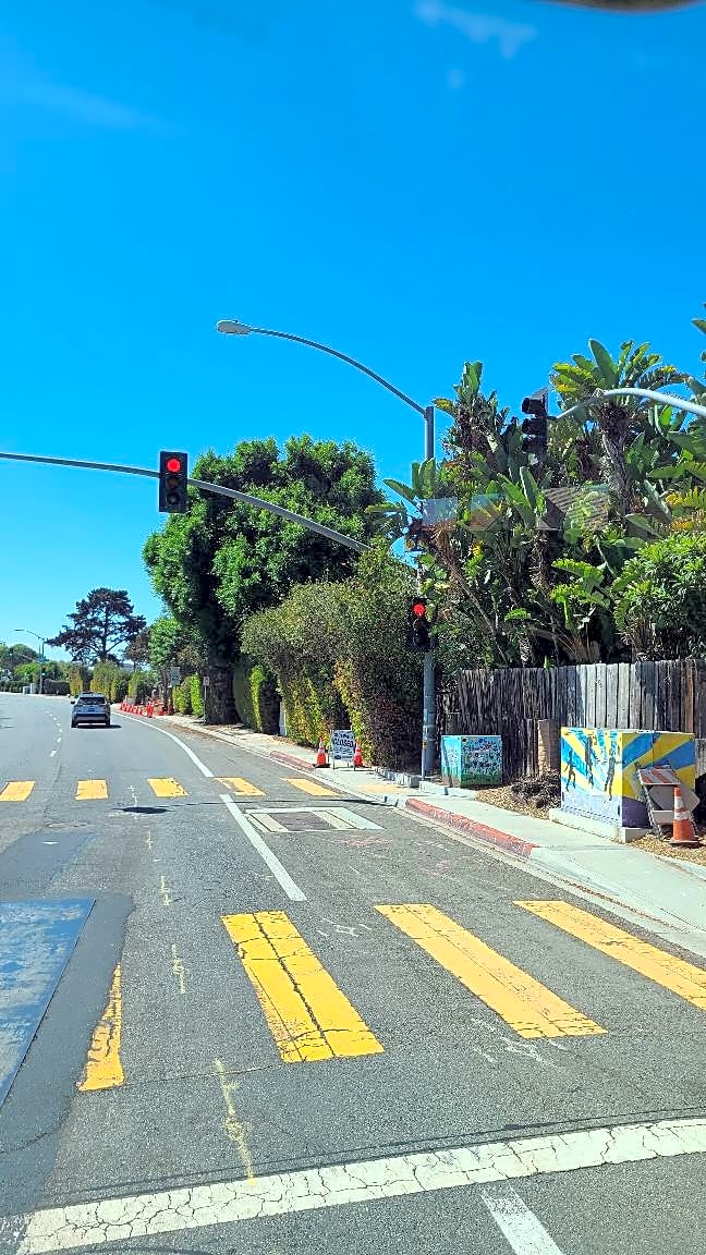 Street sign and stop light obstructed by vegetation NW corner Governor @ Agee.